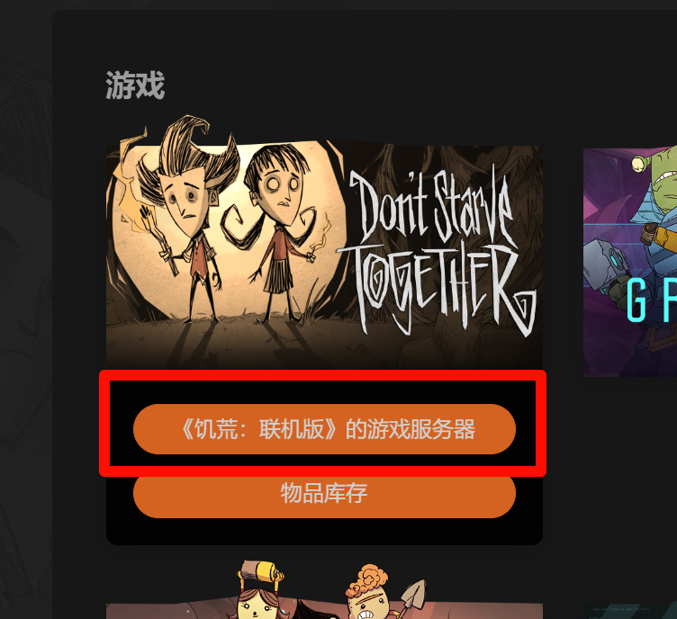 登录之后选择【游戏】-【《饥荒:联机版》的游戏服务器】